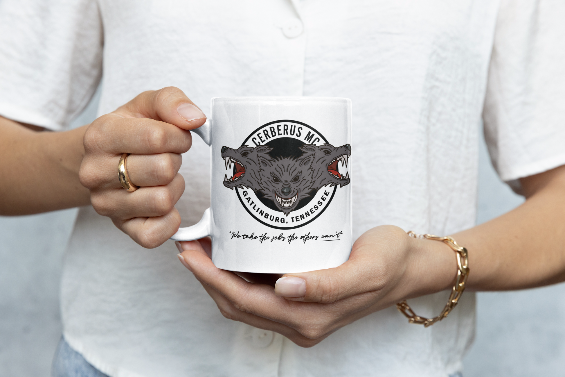 Drink your favorite hot drink out of this ceramic 16 oz coffee cup while showing love for Cerberus MC!