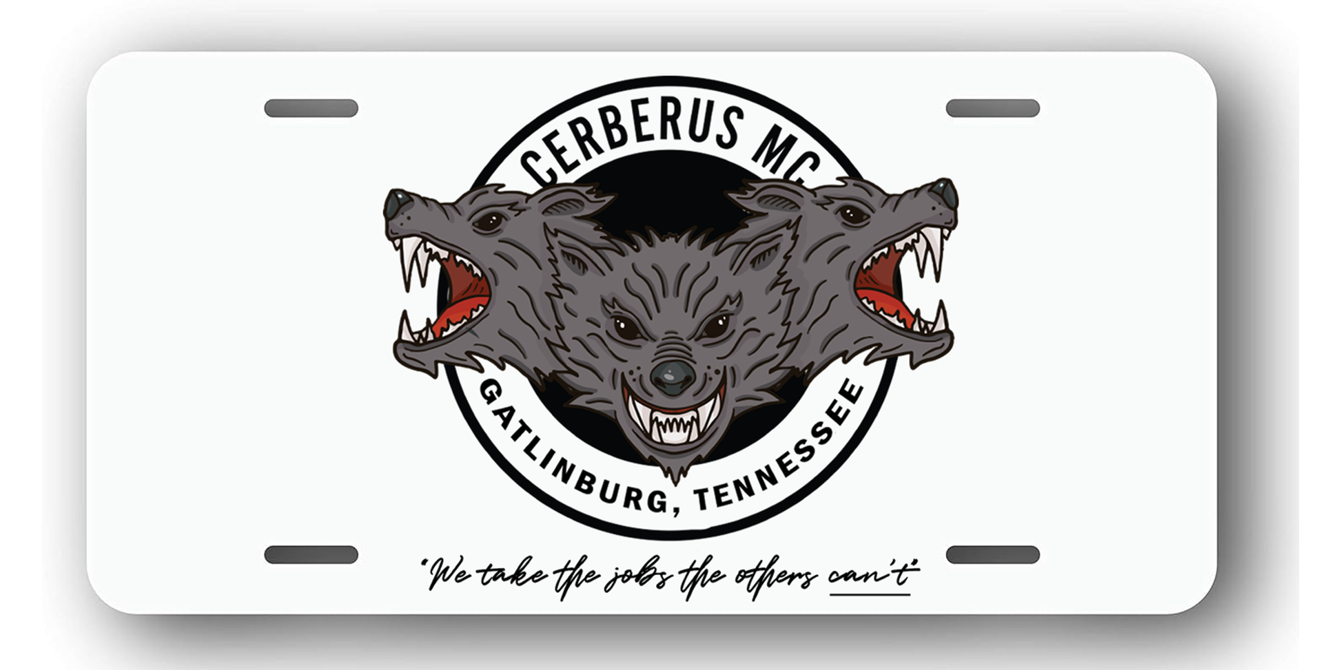Standard 6x12 License Plate Featuring Marie James Cerberus MC Tennessee Logo