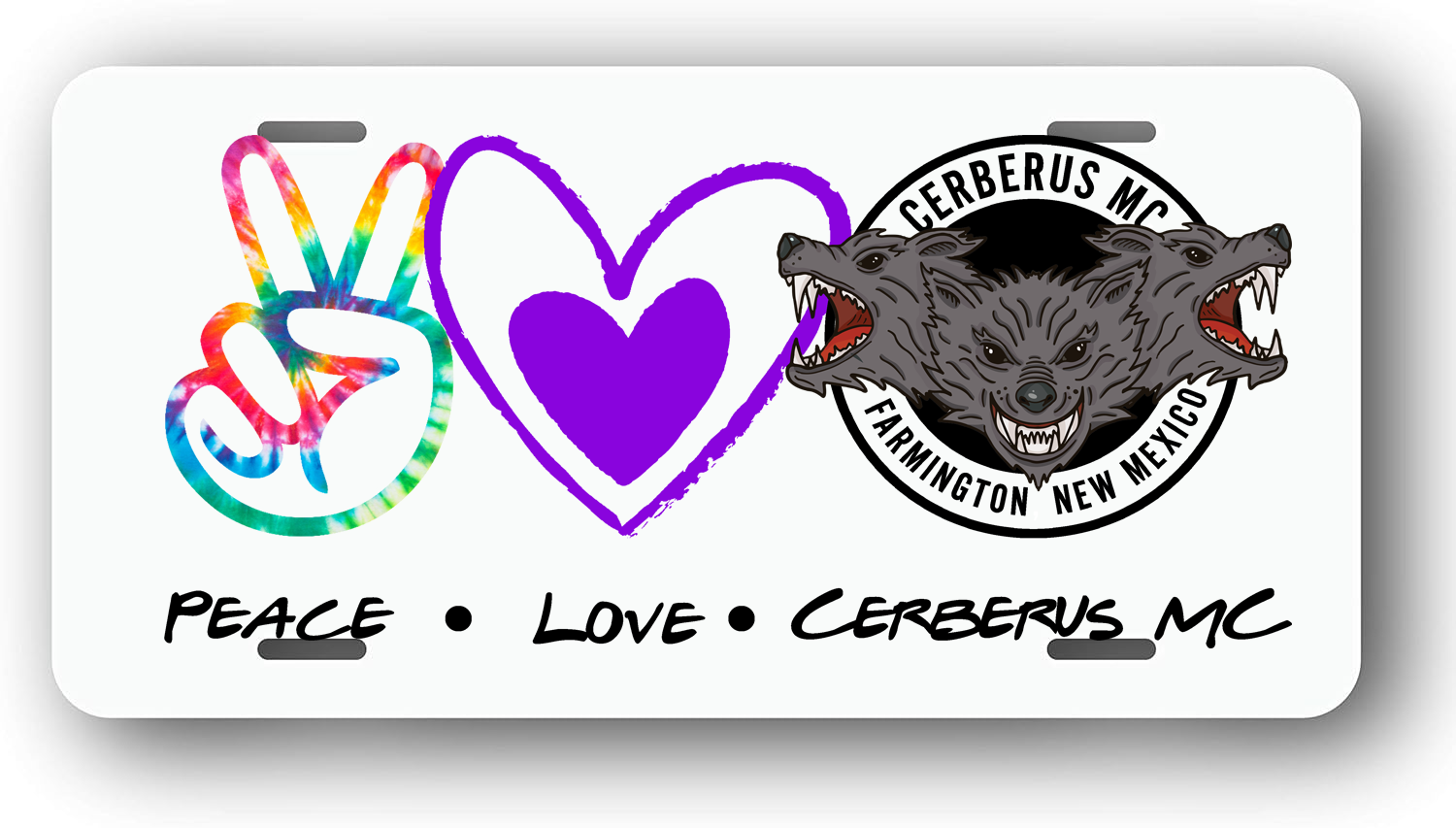 Peace, Love, Cerberus MC New Mexico License Plate